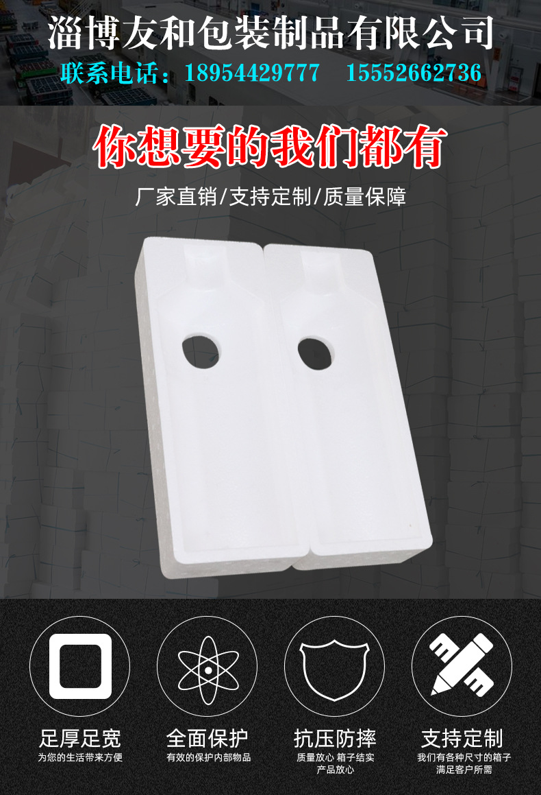 ????淄博友和包裝制品有限公司是專業(yè)的山東泡沫包裝箱加工廠家,本廠主要產(chǎn)品有:泡沫包裝箱,泡沫保鮮箱,水果蔬菜泡沫包裝箱,水果蔬菜泡沫保鮮箱,瓷磚泡沫包裝箱等,產(chǎn)品暢銷全國,深受用戶好評(píng)。泡沫包裝定做可以聯(lián)系我們網(wǎng)站 http://www.emldi.com/ 上電話,我們會(huì)第一時(shí)間跟您聯(lián)系。