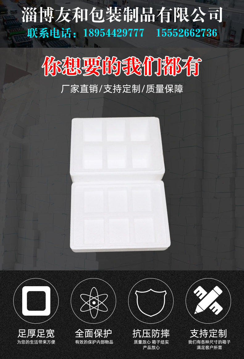 ????淄博友和包裝制品有限公司是專業(yè)的山東泡沫包裝箱加工廠家,本廠主要產(chǎn)品有:泡沫包裝箱,泡沫保鮮箱,水果蔬菜泡沫包裝箱,水果蔬菜泡沫保鮮箱,瓷磚泡沫包裝箱等,產(chǎn)品暢銷全國,深受用戶好評。泡沫包裝定做可以聯(lián)系我們網(wǎng)站 http://www.emldi.com/ 上電話,我們會第一時間跟您聯(lián)系。